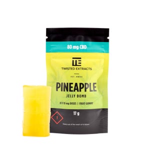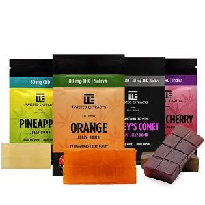 flavours, Pectin, Coconut oil, Canola oil, Cannabis extract, Carnauba wax, FD&C Blue #1, FD&C