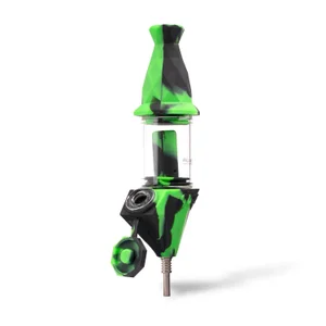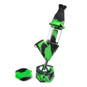 Open the silicone flap over the bowl, and pack it with your flower to enjoy the Bectar as a water bubbler, with the choke directly on the bottom. Close the flap, and insert the titanium nail into the choke on the bottom to transform the Bectar into a dab straw, and dab out of the included Geode silicone-glass dabbing dish.